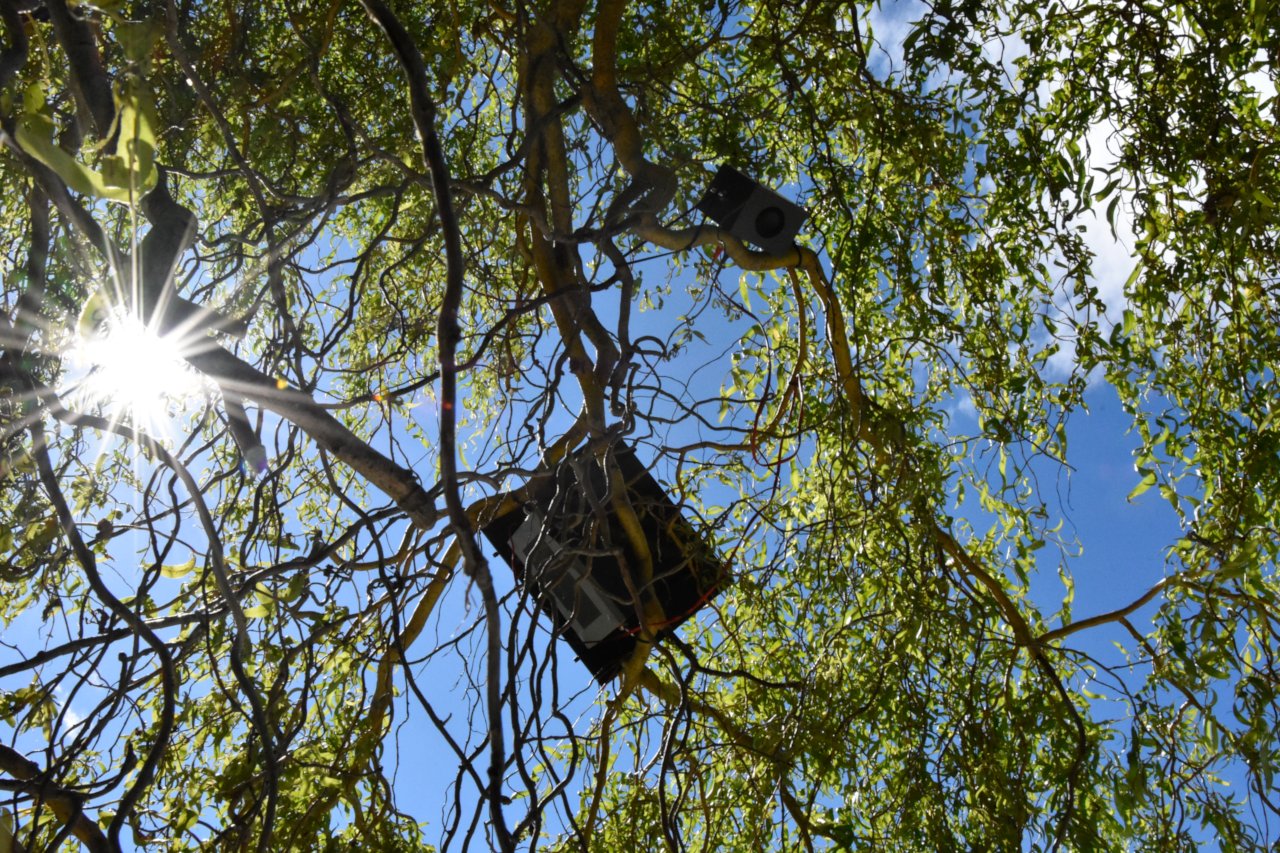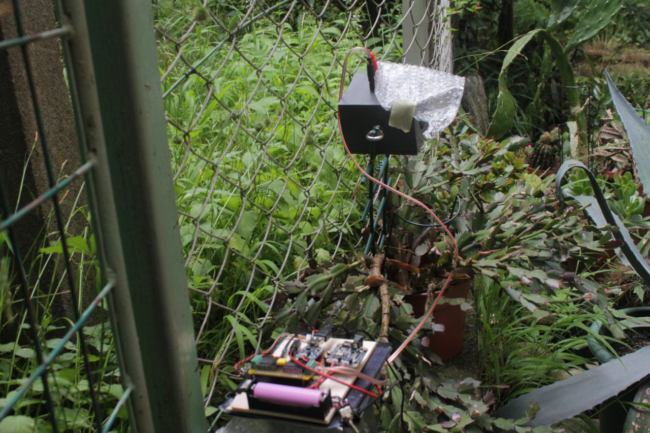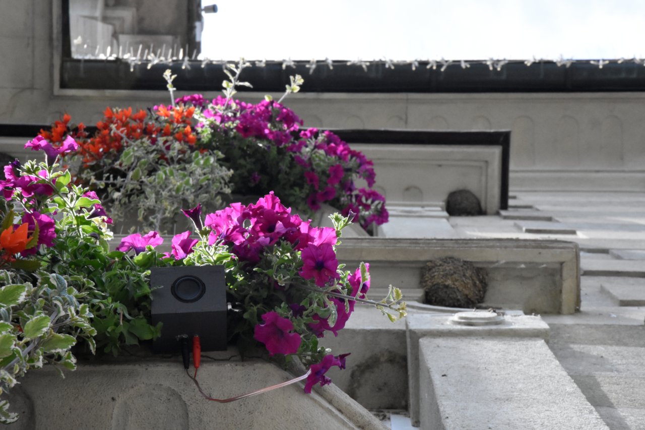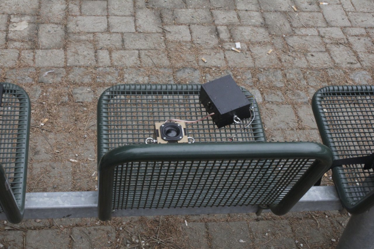 Soon after a node is woken up by the sun, it begins to gather a “high speed image” of its acoustical surroundings, eventually heard as the mode accelerate. Here, the high speed image is reproduced, yielding much higher frequencies and faster tempo than the original scene, using a factor of thirty to sixty. As a result, very low frequencies and slow rhythms of the environment, such as accelerating and decelerating motors of cars, can be heard as strange chirps. Loud impulses become clicks. Often very low frequency wind noises can be heard, sounding more like crinkling paper. Even though one might identity “voices” or “birds” in the acceleration mode, these sounds have vastly different origins, in fact the mode is made so that no human voices could be recorded, avoiding any sort of surveillance of the passers-by.