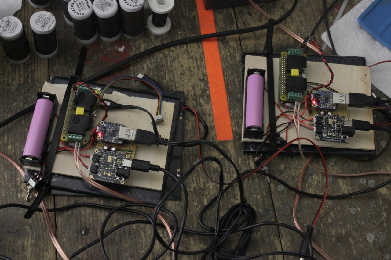 The nodes are meant to communicate among each other using a simple technique called frequency-keying. A pair of frequencies understood by all nodes is used by a node to inform the others that it is about to run its space detection, and to communicate its identity (another pair of frequencies) resulting from the detected space. Then using these individual frequencies, sometimes bursts of joy can be heard, as a similar sounding communication signal, but at these distinct frequencies. If another node notices this, it will reply with its own burst.