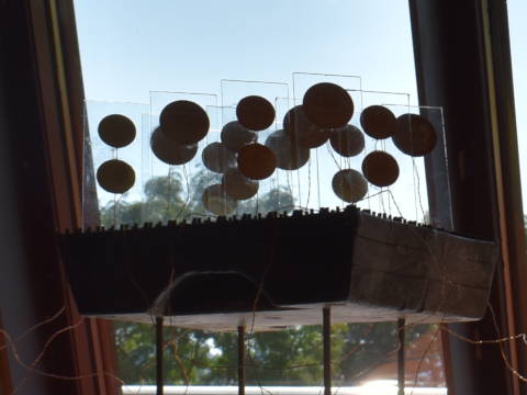 A collaborative installation, using mirrors and jars, story fragments which combine factual and fictional elements, 96 piezo speakers capturing voice sounds.