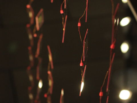 Sonification-based sound installation. 42-channel sound; paper and thread; 15-channel sensors. Sound composition: Hanns Holger Rutz. Visual composition: Ana ...
